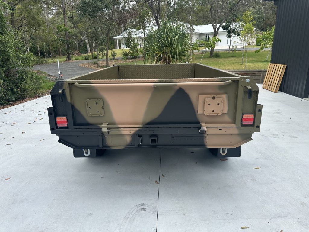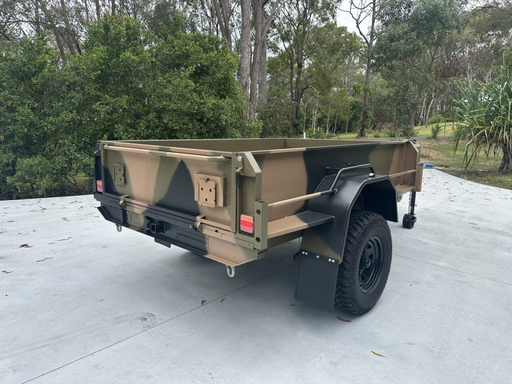 One of the main design features of our trailer frame is the modified Land Force Defence Military Transport Trailer Chassis. Which uses 125 x 75mm heavy duty chassis rails that run the full length of the trailer chassis giving the body and sub frame maximum support as it negotiates rough off road terrain. The 350 grade steel chassis is made of laser cut box section cross members and sealed rectangular hollow section steel allowing for easy wash down and cleaning, with no closed in areas where mud, sand and salt can get trapped and cause corrosion.
