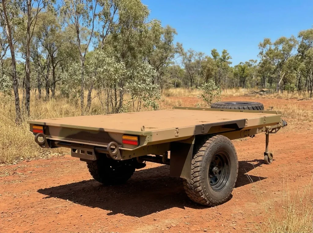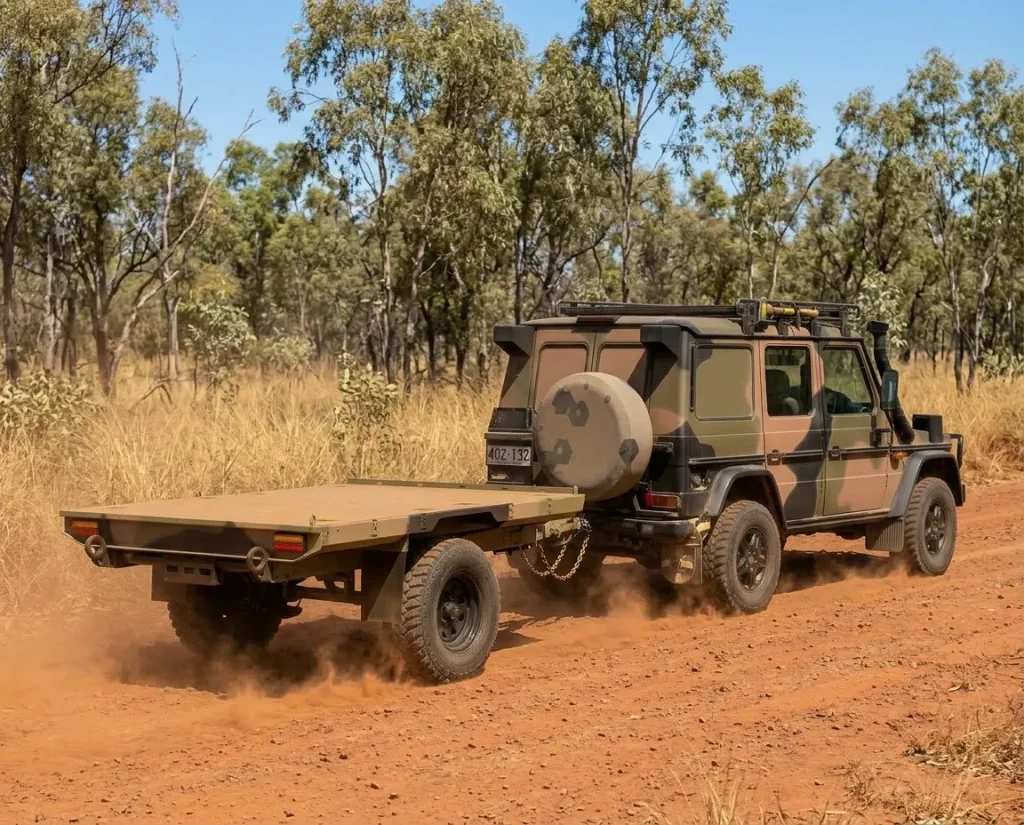 The main design feature of the L.T.S.T.’s trailer frame is the Heavy Duty 125 x 75 x 4mm Box Section chassis that runs the full length of the trailer giving it maximum strength and rigidity as it negotiates rough off road terrain. The hot dipped galvanised chassis is made of Laser Cut, open chassis members allowing for easy wash down and cleaning, with no enclosed areas where mud, sand and salt can get trapped and cause corrosion.