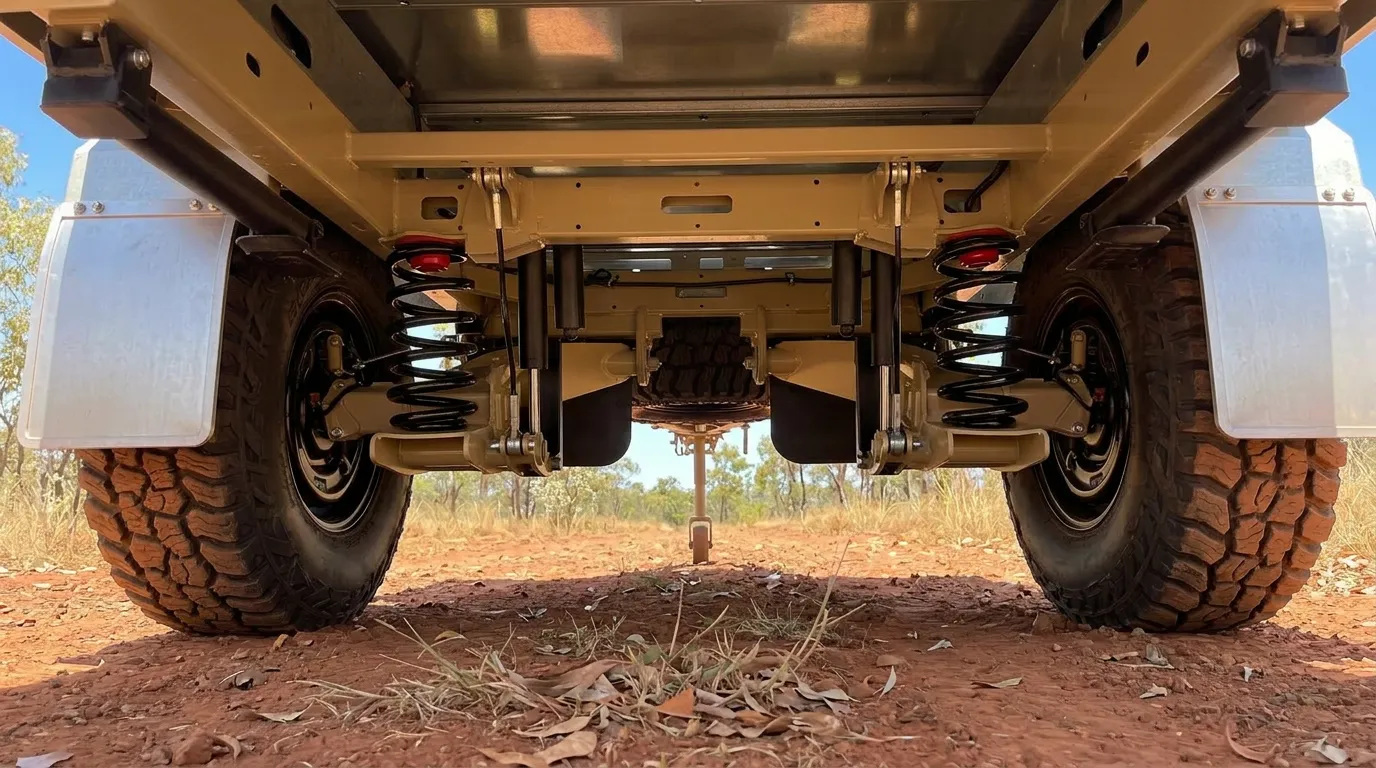 The L.T.S.T.’s suspension is built for a lifetime of Heavy Duty Off Road use with ability to incorporate interchangeable key suspension components allowing the trailer to be upgraded as your needs change. The base model is fitted standard with a coil spring/drum brake configuration with the option of upgrading to air bag and disc brakes variants at any time in the suspensions life cycle.