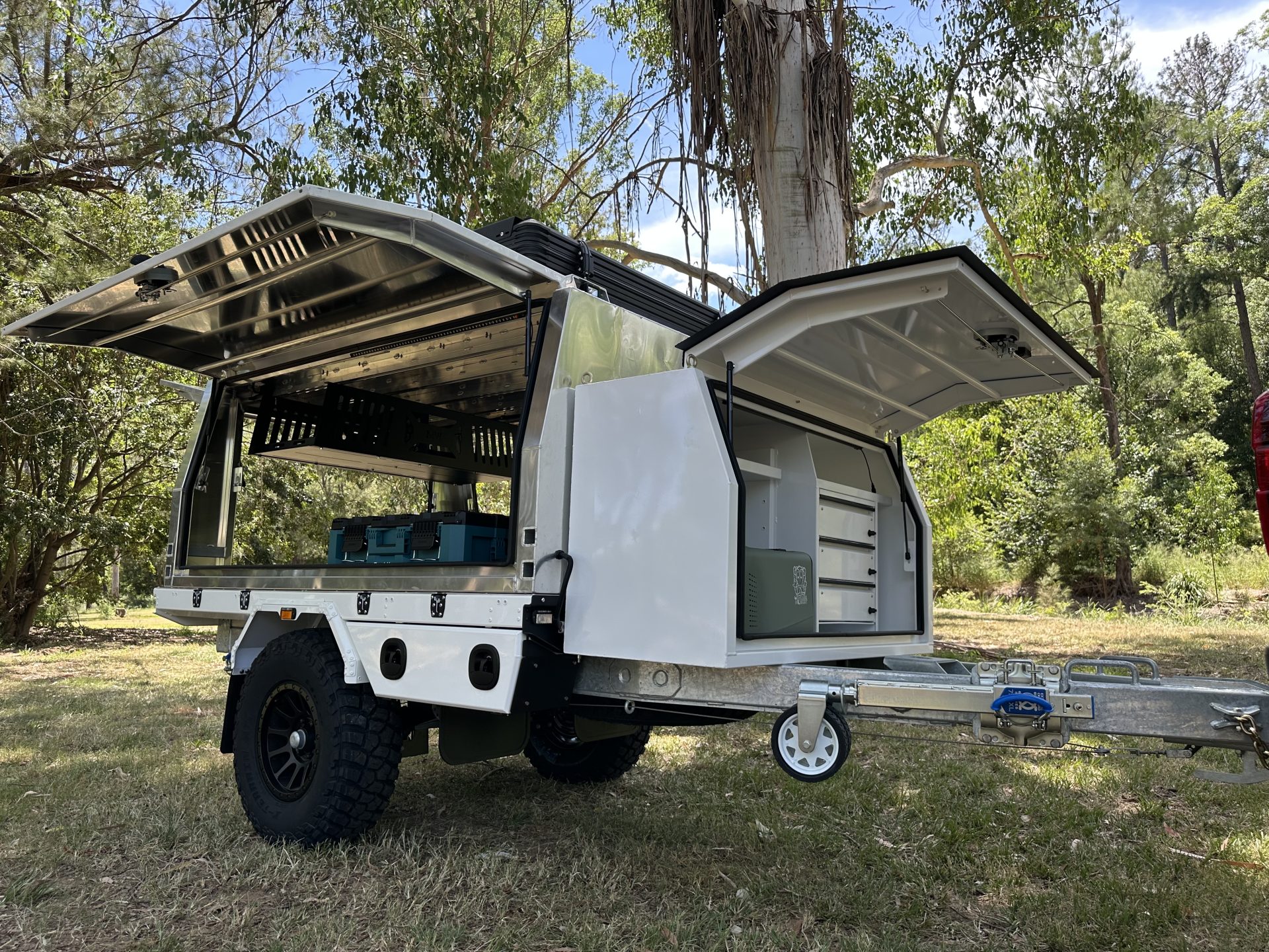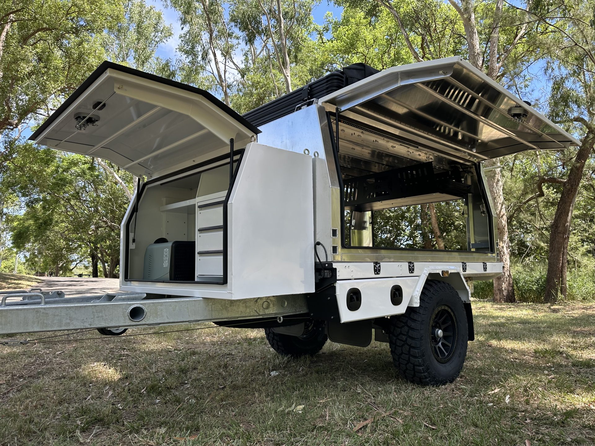 With it’s large, heavy-duty off road tyres, coil spring suspension system, high ground clearance, and waterproof dust seals, these trailers are the perfect solution for anyone who needs to travel off the beaten track in the harsh Australian outback.